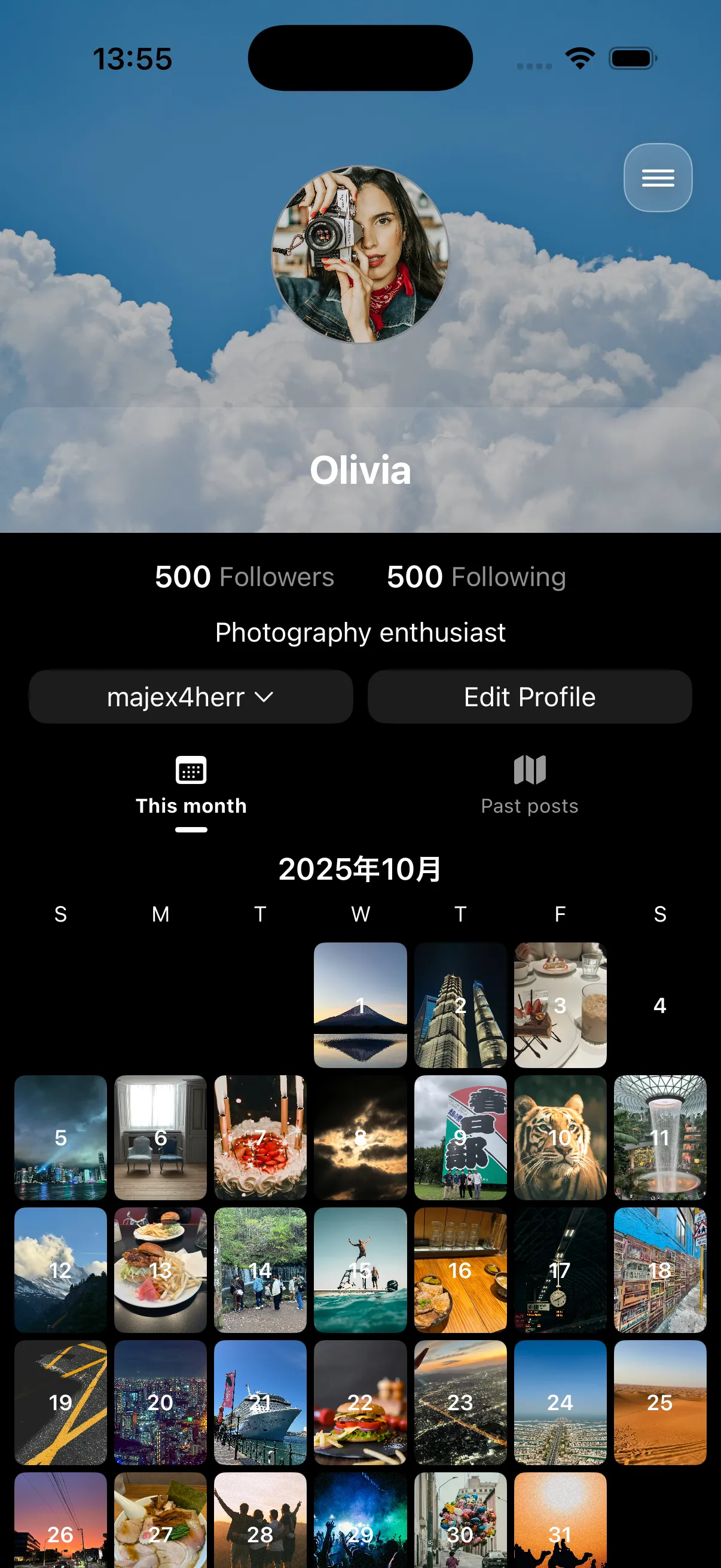Deine geposteten Fotos werden automatisch im Kalender angeordnet. Schau auf einen Monat zurück und entdecke dein ganz persönliches Fototagebuch.